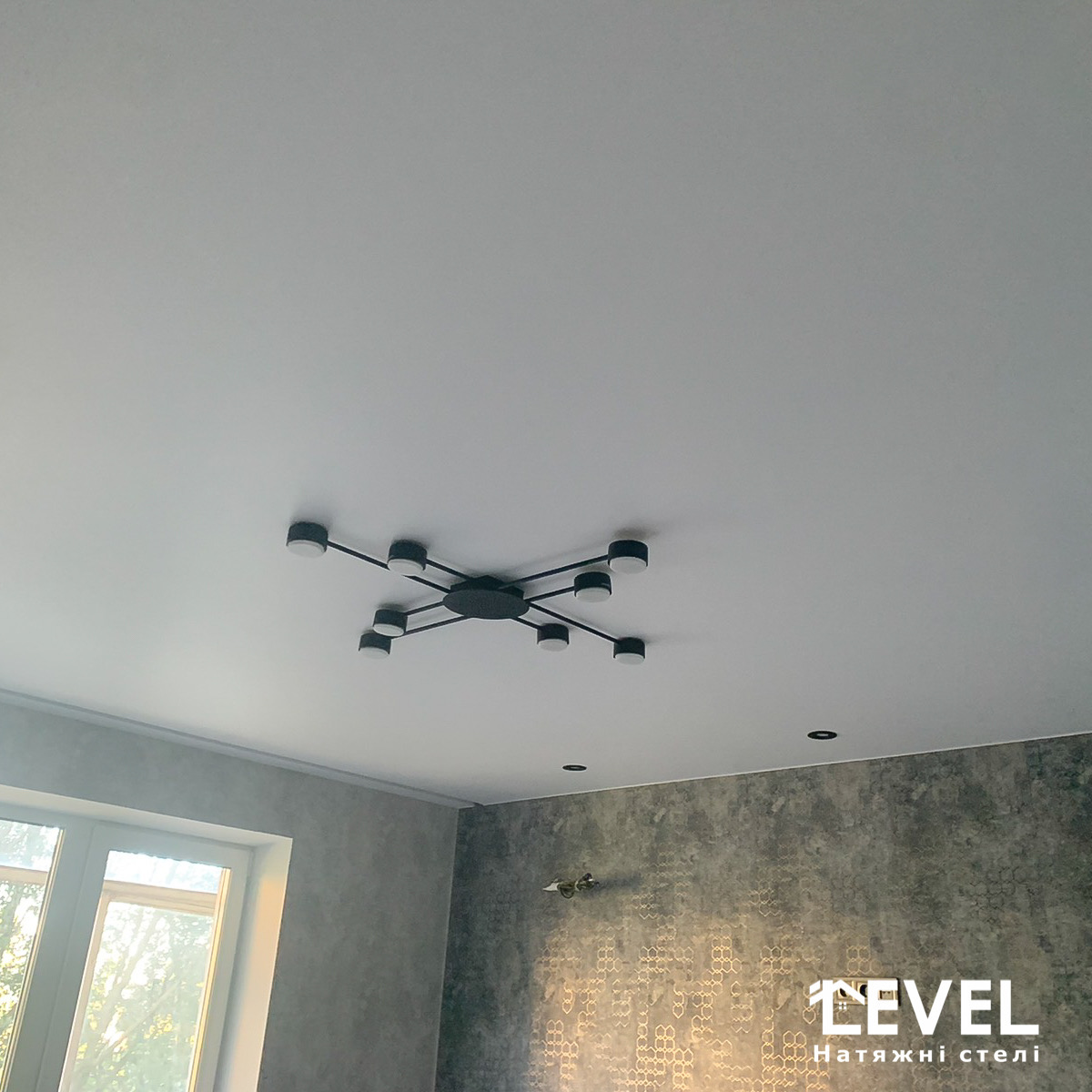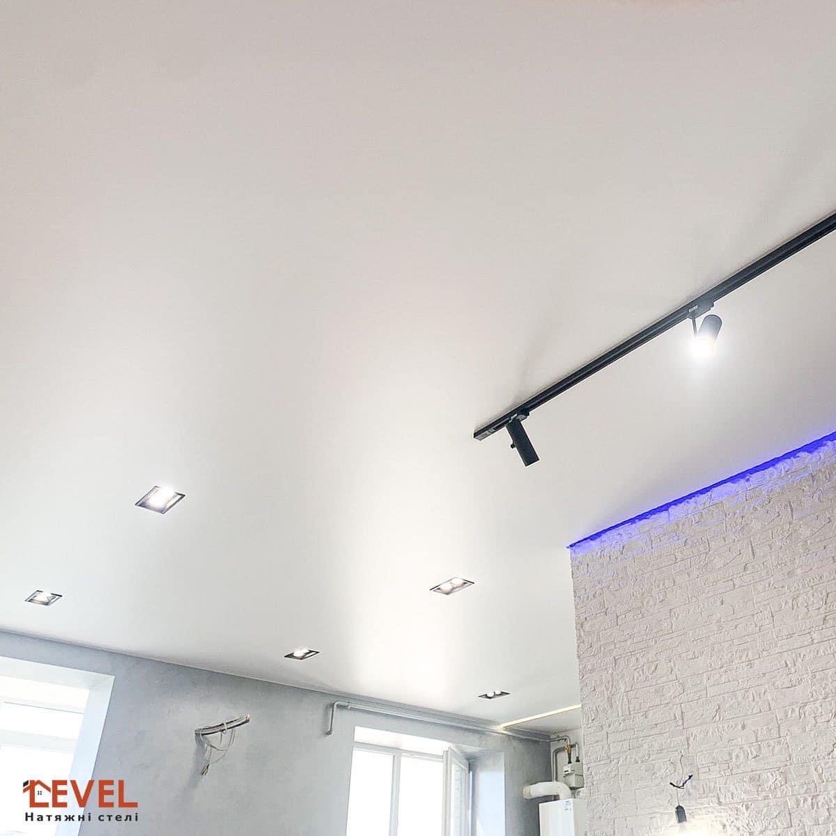 На відміну, від глянцевих натяжних стель, матові, що неспроможні грати світлом, не відбивають його. Тому при установці матової стелі дуже важливо вибрати правильне освітлення.