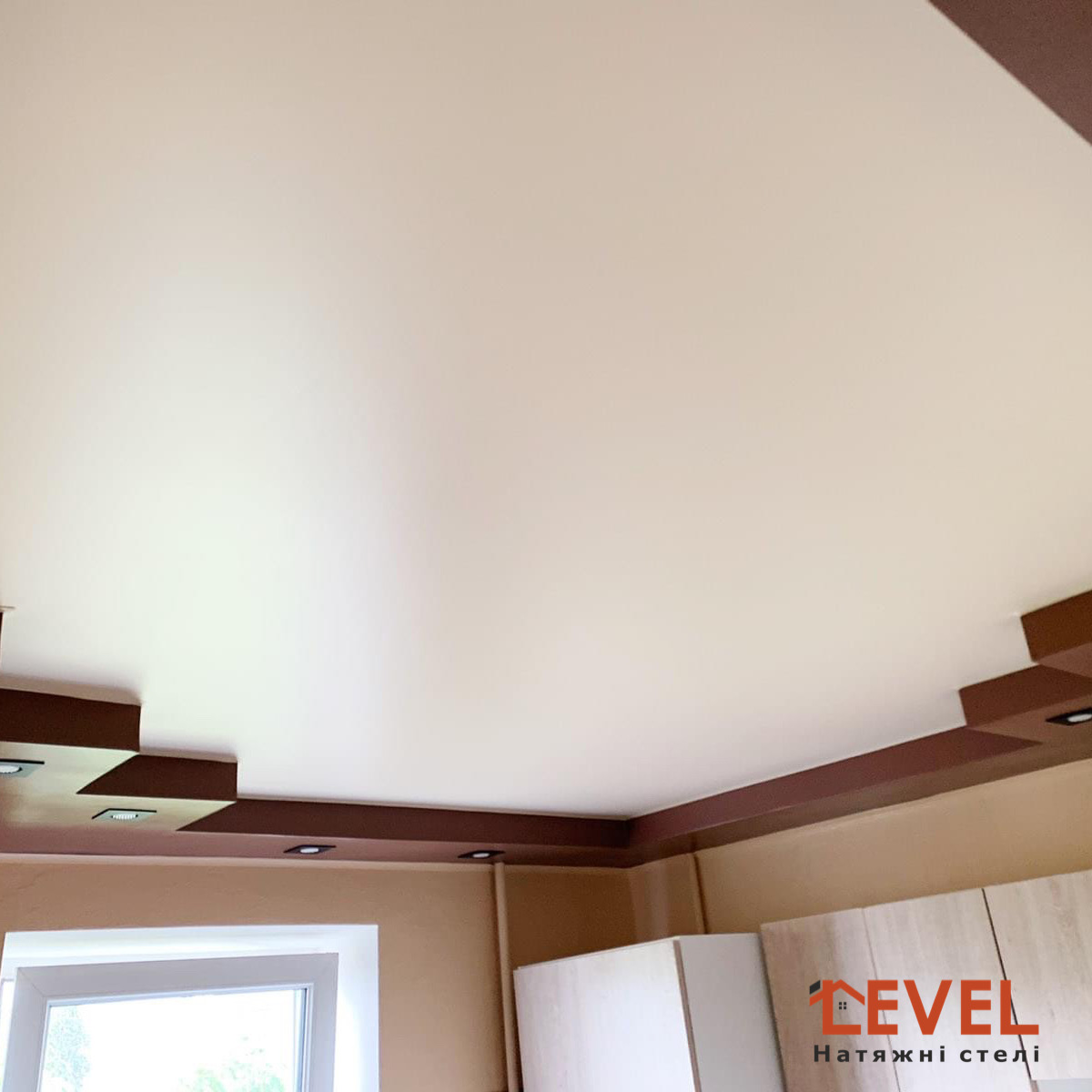Натяжні дворівневі конструкції можуть встановлюватись навіть у квартирі з низькими стелями, т.к. відступ мінімальний.