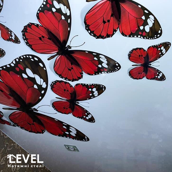 Фотодрук на натяжній стелі може бути абсолютно будь-яким. Це можуть бути квіти, небо, морська вода, візерунки, метелики.