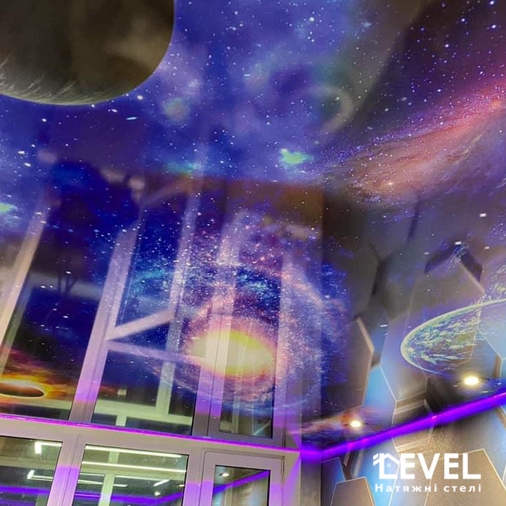 Фотодрук на натяжній стелі додасть затишку та візуально розширить простір у будь-якій кімнаті.