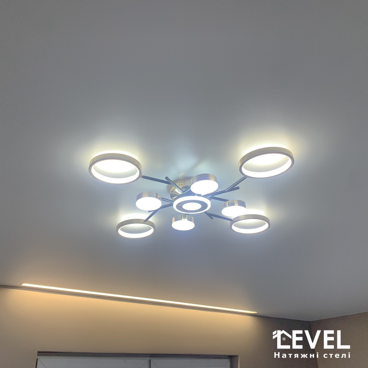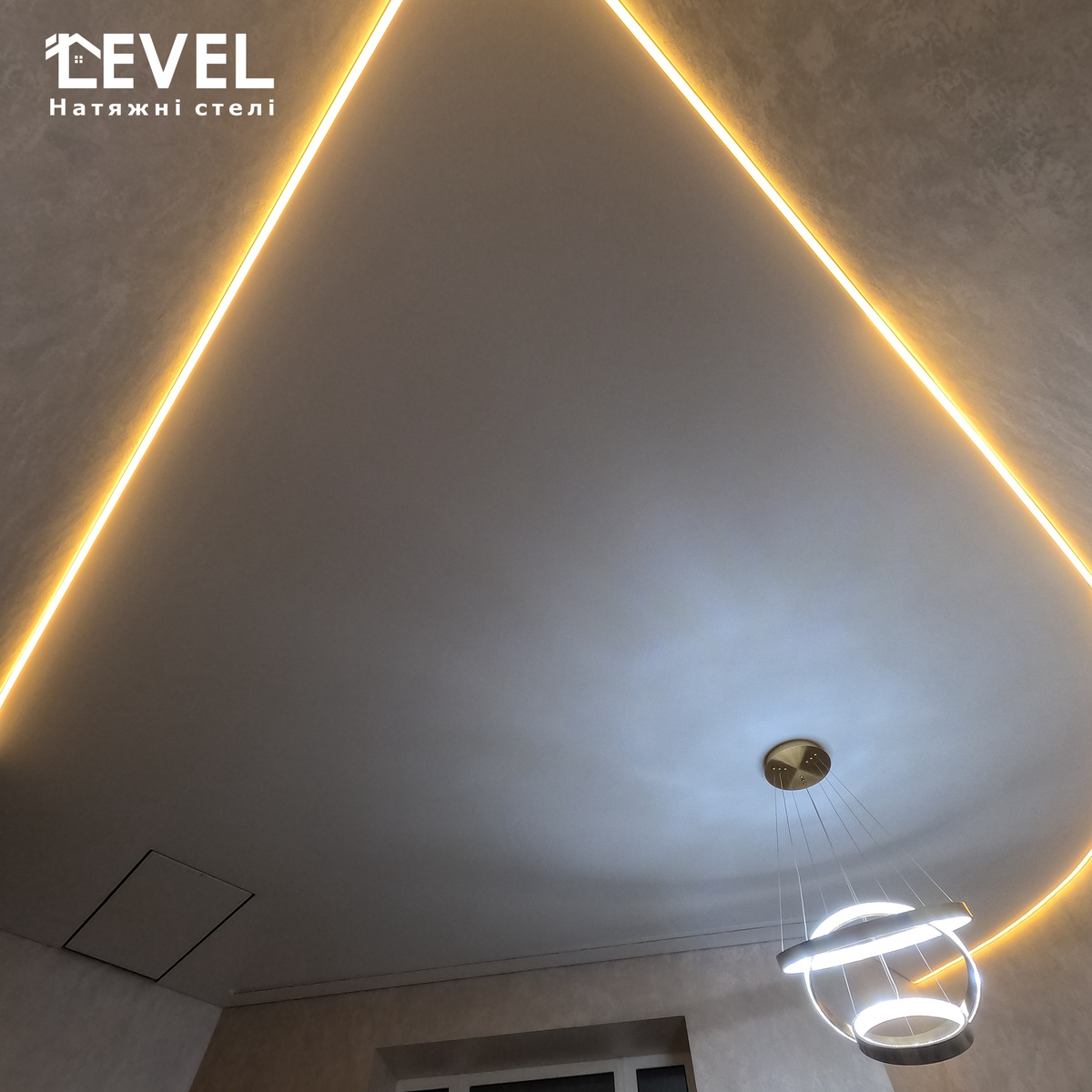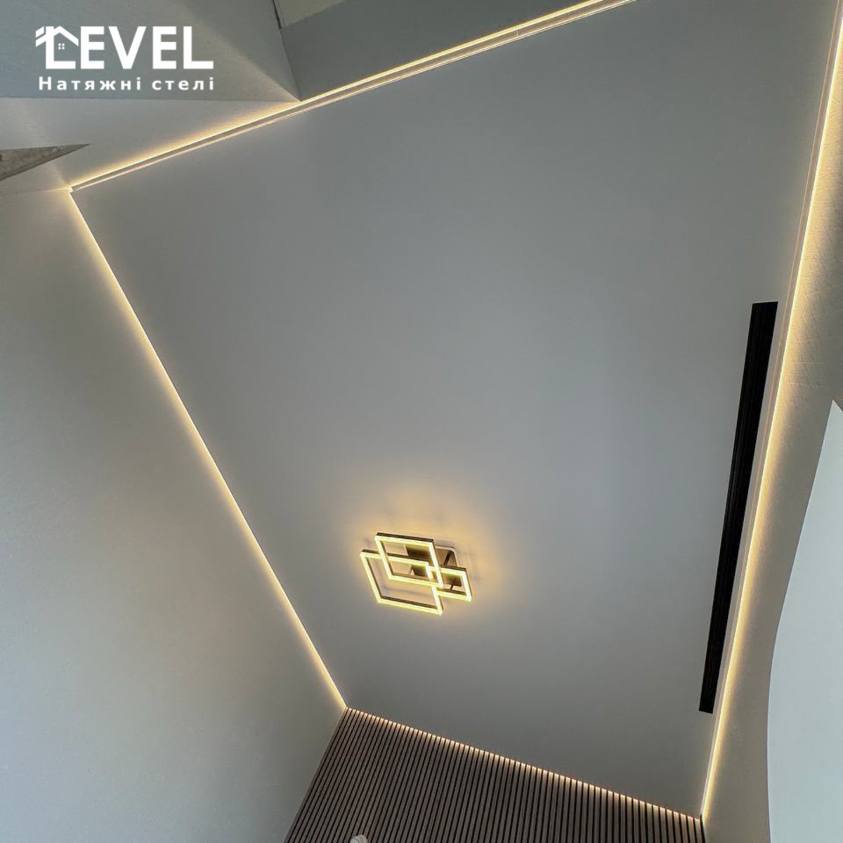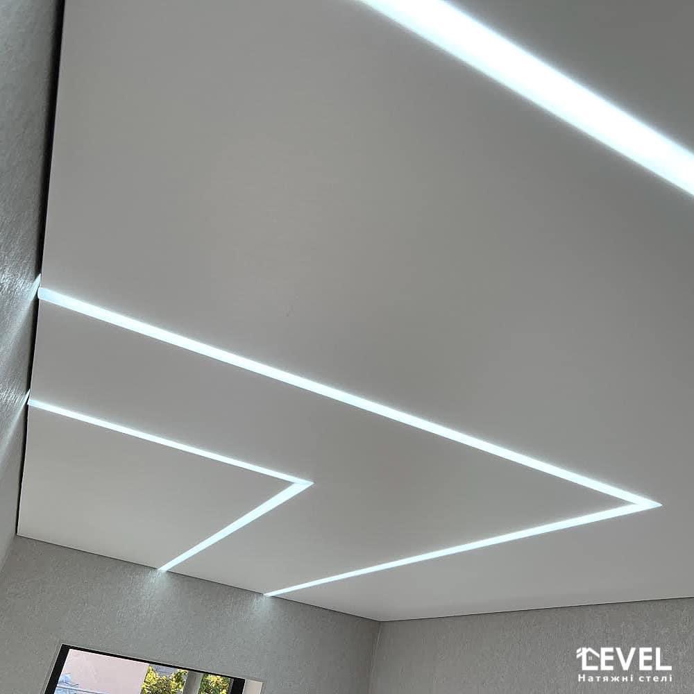 Залежно від розташування світлових ліній та їх ширини на натяжній стелі, Ви отримаєте абсолютно різний візуальний ефект в результаті.