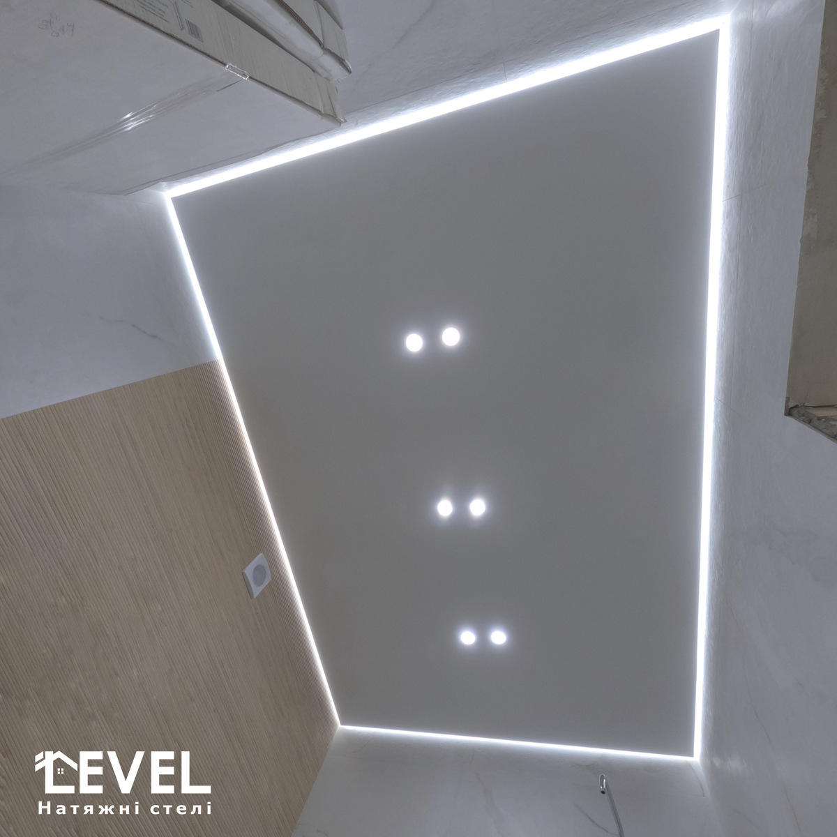 Процес монтажу стелі та освітлення займе: від 4-х годин до одного дня.