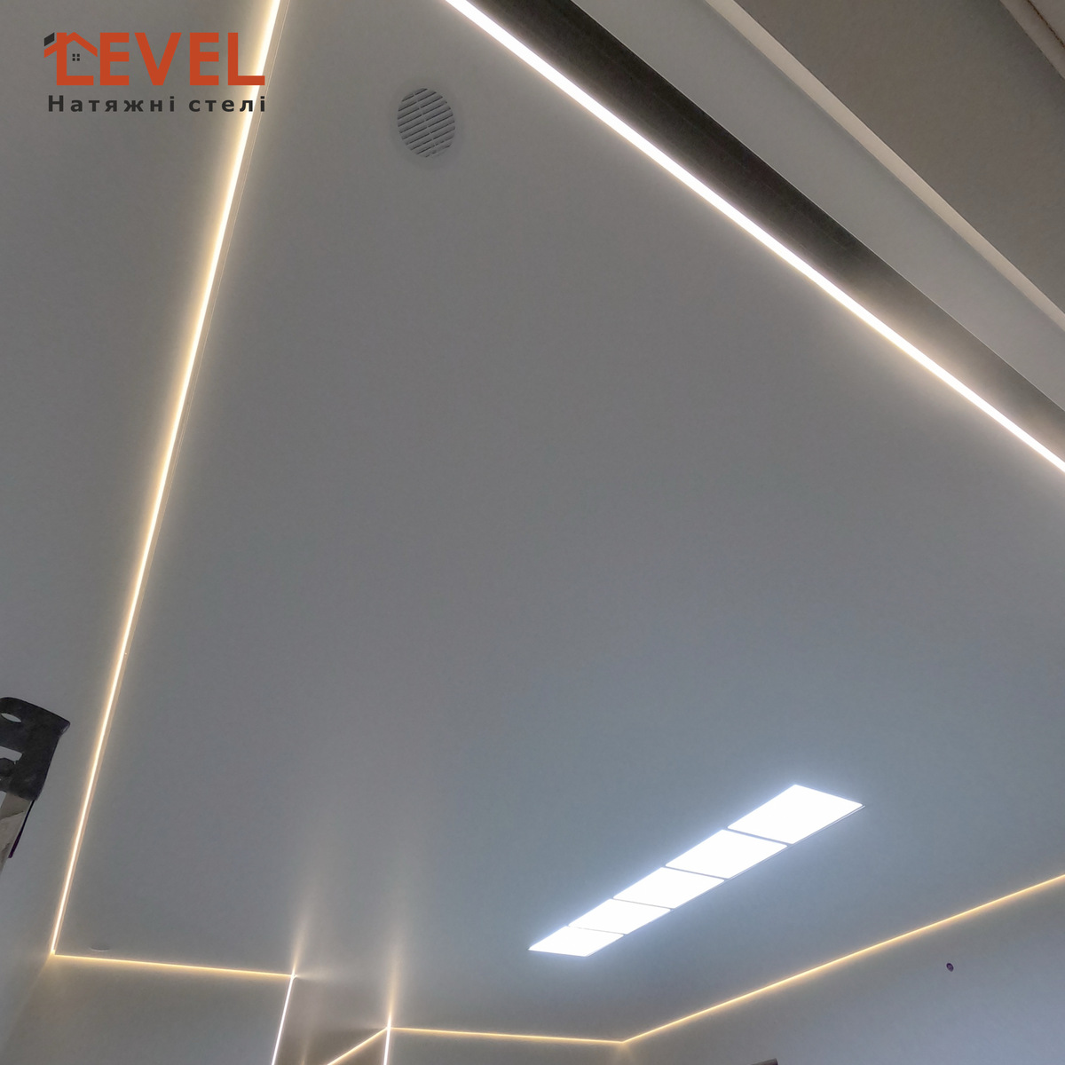 Натяжні стелі відмінно приховують усі нерівності та інші дефекти основної стелі. Маскують комунікації для вентиляції, кондиціонерів, сигналізацій, різні дроти та кабелі освітлення тощо.