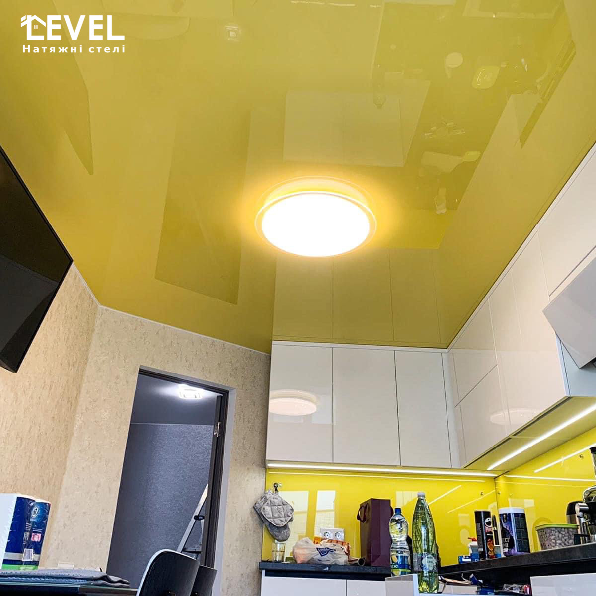 Глянцеві стелі мають рівну лакову поверхню і залишаються в такому вигляді протягом багатьох років.